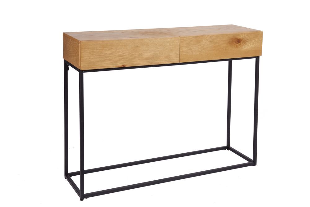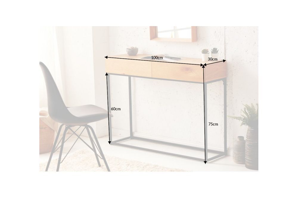Praktične dimenzije (100 cm x 75 cm x 30 cm) čine ga svestranim komadom namještaja, pogodnim za uske prostore. Njegove dvije ladice, smještene u drvenoj površini, pružaju diskretan prostor za pohranu. Svaka ladica, dimenzija 41 cm x 8 cm x 24 cm, nenametljivo se uklapa u dizajn stola, održavajući čistoću linija.