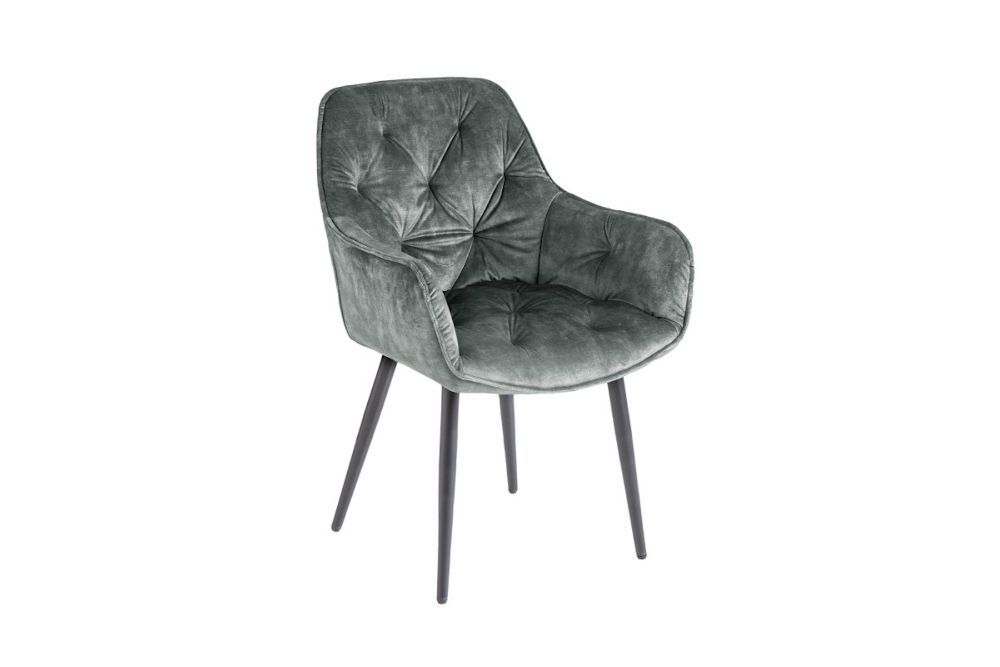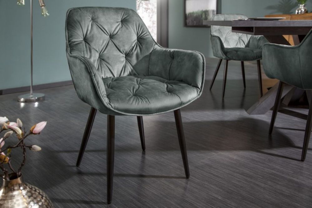 Ova stolica odiše luksuzom i bezvremenskom elegancijom, spajajući bogatu teksturu baršuna i suvremeni dizajn. Presvučen nježnim baršunom u dubokoj sivo-zelenoj nijansi, ovaj komad namještaja unosi osjećaj topline i sofisticiranosti u svaki interijer. Ergonomski oblikovano sjedalo i naslon pružaju vrhunsku udobnost, dok elegantne linije i minimalistički dizajn stvaraju savršen sklad između estetike i funkcionalnosti. Čvrsta metalna baza osigurava stabilnost i dugotrajnost, dok nježna tekstura baršuna dodaje dašak raskoši svakom prostoru. Idealno se uklapa u blagovaonice, radne prostore ili dnevne sobe, unoseći profinjenost i udobnost u vaš dom.