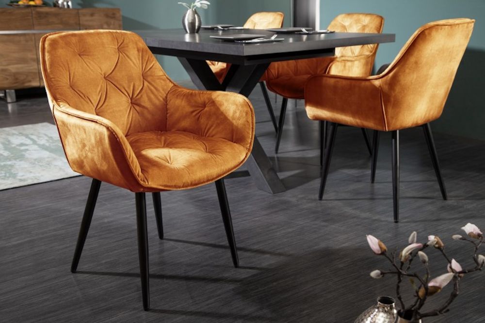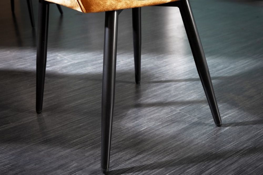 Ova stolica odiše luksuzom i bezvremenskom elegancijom, spajajući bogatu teksturu baršuna i suvremeni dizajn. Presvučen nježnim baršunom u dubokoj žutoj nijansi, ovaj komad namještaja unosi osjećaj topline i sofisticiranosti u svaki interijer. Ergonomski oblikovano sjedalo i naslon pružaju vrhunsku udobnost, dok elegantne linije i minimalistički dizajn stvaraju savršen sklad između estetike i funkcionalnosti. Čvrsta metalna baza osigurava stabilnost i dugotrajnost, dok nježna tekstura baršuna dodaje dašak raskoši svakom prostoru. Idealno se uklapa u blagovaonice, radne prostore ili dnevne sobe, unoseći profinjenost i udobnost u vaš dom.