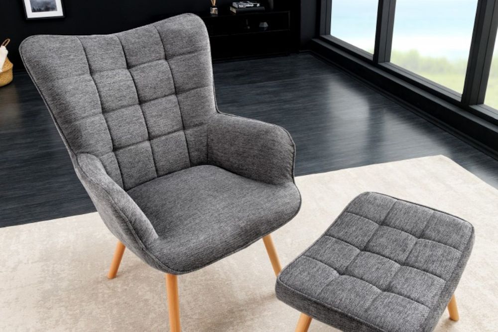 Prirodne drvene noge, izrađene od bukve, donose toplinu i organski osjećaj u ovaj moderan dizajn. Njihova svjetlost kontrastira s tamnijom sivošću presvlake, čime se postiže balans između prirodnog i urbanog, između mekog i čvrstog.