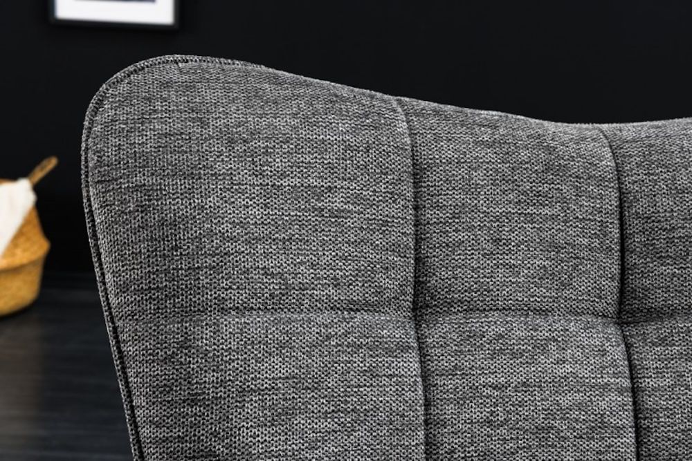 Materijal kojim je stolac presvučen, strukturirani tekstil od 100% poliestera, pruža ne samo vizualnu privlačnost, već i dugotrajnost. Siva boja presvlake unosi mirnoću i neutralnost, omogućujući stolcu da se lako uklopi u različite boje i stilove interijera. Dekorativni šavovi koji prolaze kroz tkaninu dodaju teksturalnu slojevitost, stvarajući igru svjetla i sjene koja naglašava oblike stolca.