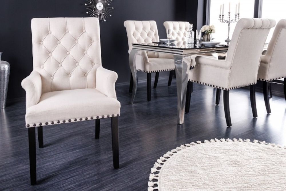 Ova stolica unosi osjećaj bezvremenske elegancije u svaki interijer, savršeno spajajući udobnost i profinjeni dizajn. Presvučen teksturiranom tkaninom u nježnoj bež nijansi, pruža osjećaj mekoće i prirodne topline koja stvara ugodnu atmosferu. Njegove udobne naslone za ruke i ergonomski oblik omogućavaju vrhunsku potporu i udobnost, čineći svaki trenutak sjedenja posebnim. Stabilna konstrukcija i pažljivo oblikovane linije doprinose izdržljivosti i vizualnoj lakoći, a suptilan dizajn omogućava lako uklapanje u različite stilove interijera, od klasičnih do modernih. Ovaj stolac je više od funkcionalnog komada – on postaje središnji element prostora, podižući estetiku svake prostorije.