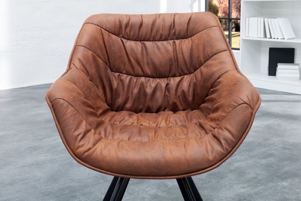 Ova stolica donosi savršen spoj udobnosti i vintage dizajna. Tapecirana u tamnosmeđoj antik umjetnoj koži, odiše toplinom i stilom koji odražava bezvremensku eleganciju. Njeno široko sjedalo i visoki naslon osiguravaju podršku i udobnost, dok su pažljivo izrađeni šavovi dodatni detalj koji unosi karakter. Čvrste metalne noge u crnoj boji stvaraju kontrast s mekom presvlakom, naglašavajući suvremeni, ali klasičan izgled. Idealna je za blagovaonice, uredske prostore ili dnevne sobe kojima želite dodati sofisticiranost i udobnost.