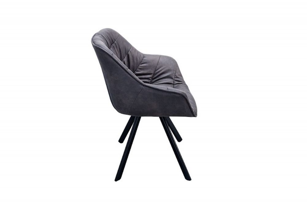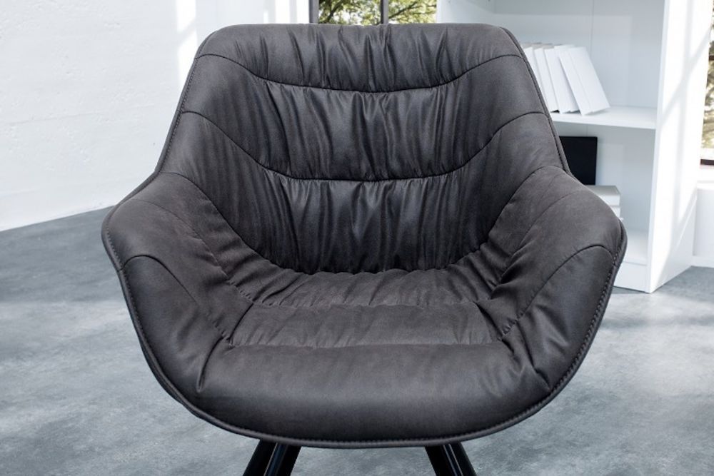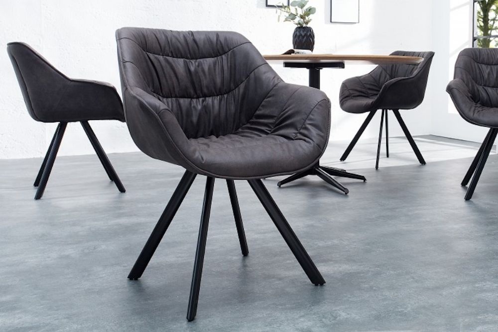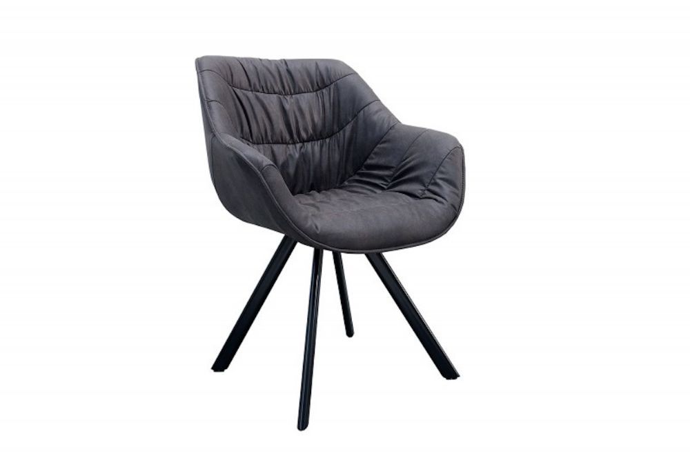 Ova stolica donosi savršen spoj udobnosti i vintage dizajna. Tapecirana u tamnosivoj antik umjetnoj koži, odiše toplinom i stilom koji odražava bezvremensku eleganciju. Njeno široko sjedalo i visoki naslon osiguravaju podršku i udobnost, dok su pažljivo izrađeni šavovi dodatni detalj koji unosi karakter. Čvrste metalne noge u crnoj boji stvaraju kontrast s mekom presvlakom, naglašavajući suvremeni, ali klasičan izgled. Idealna je za blagovaonice, uredske prostore ili dnevne sobe kojima želite dodati sofisticiranost i udobnost.