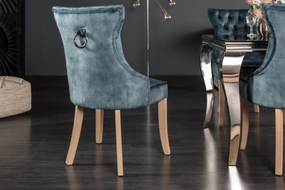 Ova stolica spaja bezvremenski šarm klasičnog dizajna s udobnošću i funkcionalnošću, unoseći eleganciju u svaki prostor. Presvučen finom baršunastom tkaninom u petrol zelenoj nijansi, ovaj komad namještaja odiše prirodnom toplinom i suptilnom profinjenošću. Njegov ergonomski oblik pruža savršenu potporu za leđa, omogućavajući dugotrajno sjedenje s osjećajem potpune udobnosti. Diskretno postavljen praktični ručak na stražnjoj strani naslona olakšava premještanje stolca, a čvrsti okvir osigurava stabilnost i dugovječnost. Minimalističke linije ovog stolca čine ga idealnim izborom za moderne i klasične interijere, stvarajući prostor ispunjen stilom i funkcionalnošću.