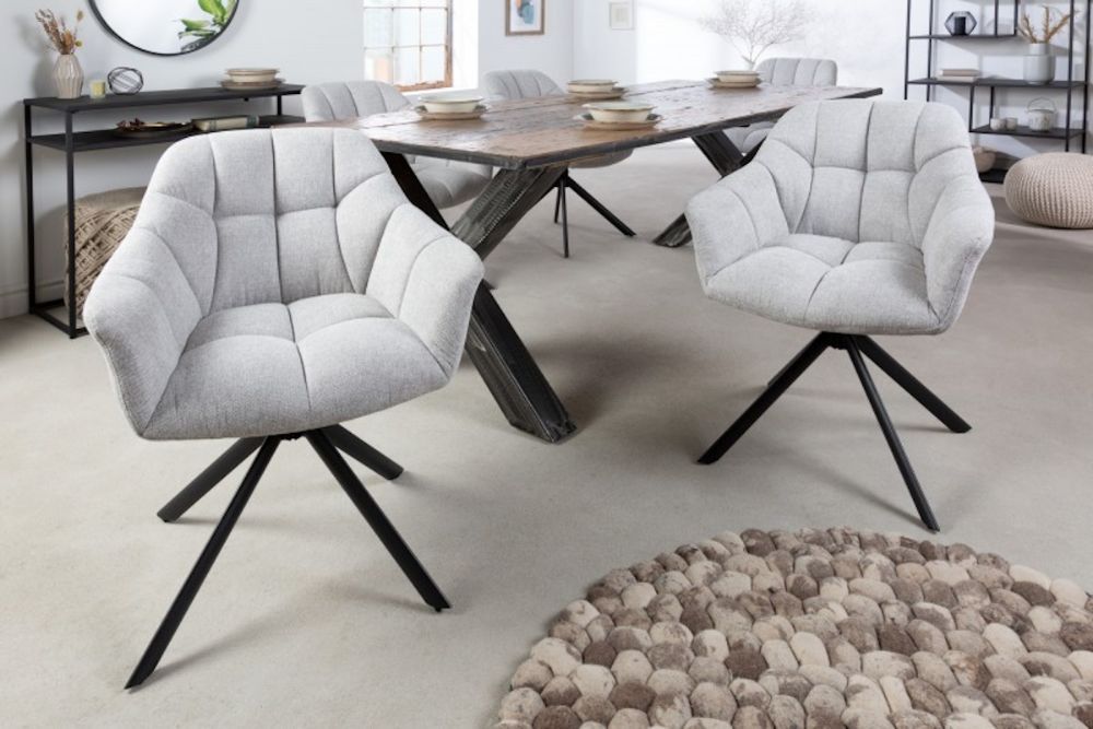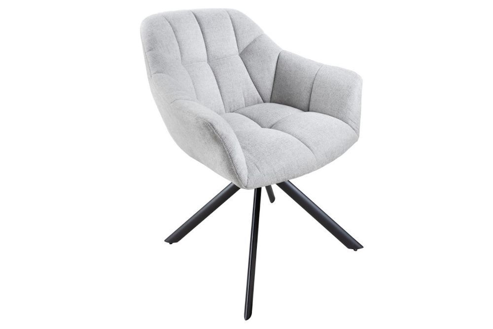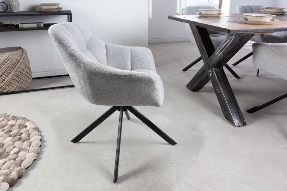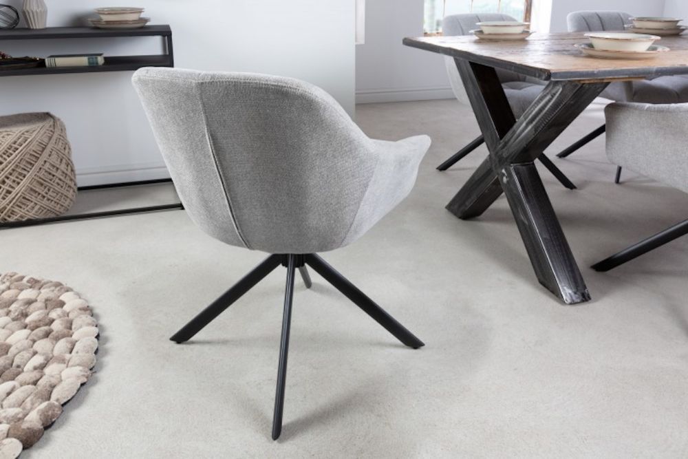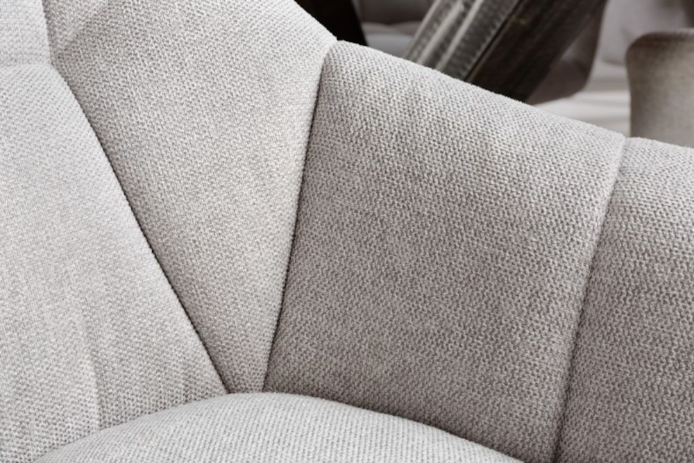 Ova elegantna okretna stolica odiše modernim minimalizmom i suptilnim luksuzom, savršeno uklapajući funkcionalnost i estetiku. Presvučen tkaninom u elegantnoj svjetlo sivoj nijansi, stolac donosi osjećaj profinjenosti u svaki interijer. Njegov ergonomski dizajn pruža optimalnu potporu tijelu, dok okretni mehanizam omogućava slobodu kretanja bez napuštanja udobnosti sjedenja. Blago zakrivljeni naslon i meko sjedalo stvaraju savršenu kombinaciju udobnosti i suvremenog dizajna, a čvrsta metalna baza jamči stabilnost i trajnost. Ovaj stolac je idealan za radne prostore, blagovaonice ili dnevne sobe, unoseći u prostor notu sofisticiranog stila.