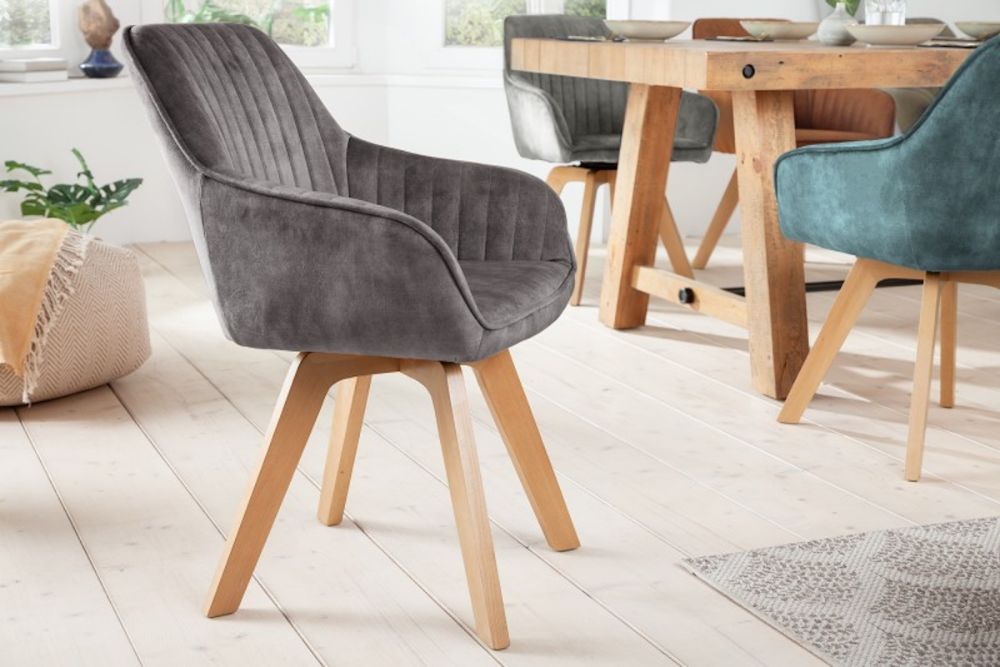 Ova elegantna okretna stolica savršeno spaja luksuz i funkcionalnost, stvarajući jedinstven komad koji unosi profinjenost u svaki prostor. Presvučen baršunom u suptilnoj sivoj nijansi , stolac nudi mekoću na dodir i vizualni sjaj koji podiže atmosferu interijera. Njegov ergonomski oblik pruža vrhunsku udobnost, dok okretni mehanizam omogućava jednostavnost kretanja i fleksibilnost u svakodnevnoj upotrebi. Sjedalo i naslon pažljivo su dizajnirani kako bi osigurali potporu i udobnost tijekom duljeg sjedenja, dok čvrsta metalna baza osigurava stabilnost i trajnost. Idealno se uklapa u moderne i sofisticirane interijere, bilo da se koristi u blagovaonici, radnom prostoru ili dnevnom boravku, pružajući ne samo funkcionalnost, već i estetski užitak.