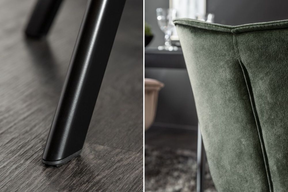 Ova stolica unosi dašak luksuza i udobnosti u svaki prostor. Presvučena glatkim baršunom utamno zelenoj nijansi, pruža mekoću na dodir i suptilan sjaj koji privlači poglede. Svojim zaobljenim naslonom i dubokim sjedalom pruža udobnost za duge sate sjedenja. Metalne noge, fino izrađene, dodaju stabilnost i moderni kontrast prema baršunu, čineći ovu stolicu elegantnim izborom za blagovaonice, dnevne boravke ili radne prostore kojima želite dati notu elegancije.