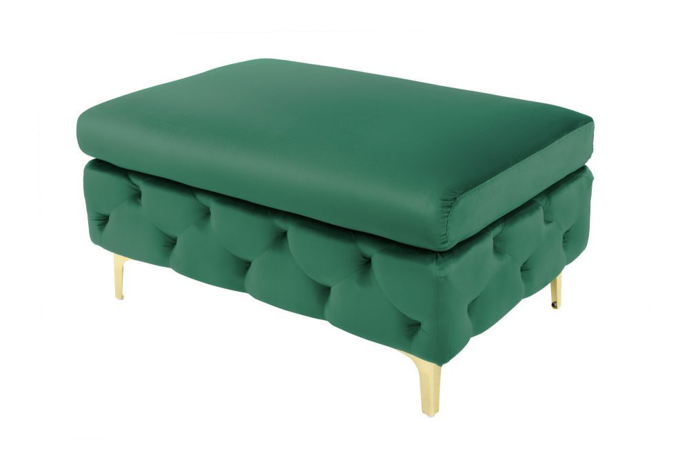 Presvučen raskošnim baršunom u nijansi smaragdno zelene, ovaj tabure reflektira svjetlost u suptilnim, svilenkastim valovima, dodajući notu glamura i topline. Baršun, 100% od poliestera, ne samo da odiše sofisticiranošću nego je i izdržljiv, spreman da izdrži svakodnevnu upotrebu, zadržavajući pritom svoju luksuznu teksturu. Masivno drvo topole, koje čini okvir, pruža tabureu čvrstoću i stabilnost, naglašavajući dugotrajnost izrade.