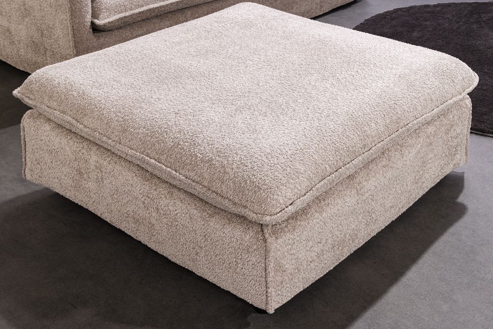 Ovaj tabure u šampanj-bež boji predstavlja minimalističku sofisticiranost, poput oblaka oblikovanog u savršeno zaobljen komad namještaja, spreman za upotpunjavanje svakog interijera. S dimenzijama od 100 cm u širini i dužini te visinom od 42 cm, ovaj tabure se smješta između funkcionalnosti i elegancije, istovremeno nisko položen i širok – idealan za opuštanje i dodavanje profinjenosti prostoru.