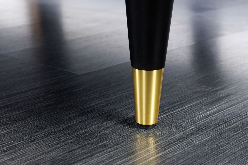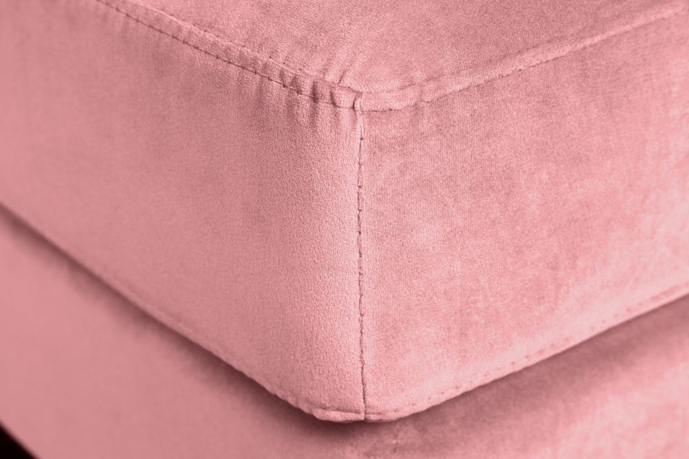 Obučen u nježni, staro roza baršun, čini se kao da vas poziva na opuštanje i ugodu. Baršunasta tkanina od 100% poliestera zrači toplinom i mekoćom, a pod prstima pruža senzaciju koja priziva spokoj i luksuz prošlih vremena. Noge, izrađene od čvrstog drveta kaučukovca, dodatno su naglašene zlatnim kapicama na krajevima, stvarajući sklad između prirodnih i metalnih elemenata. Crna boja nogu uz zlatne detalje daje mu dašak sofisticiranosti, istovremeno stabilnog i luksuznog izgleda.