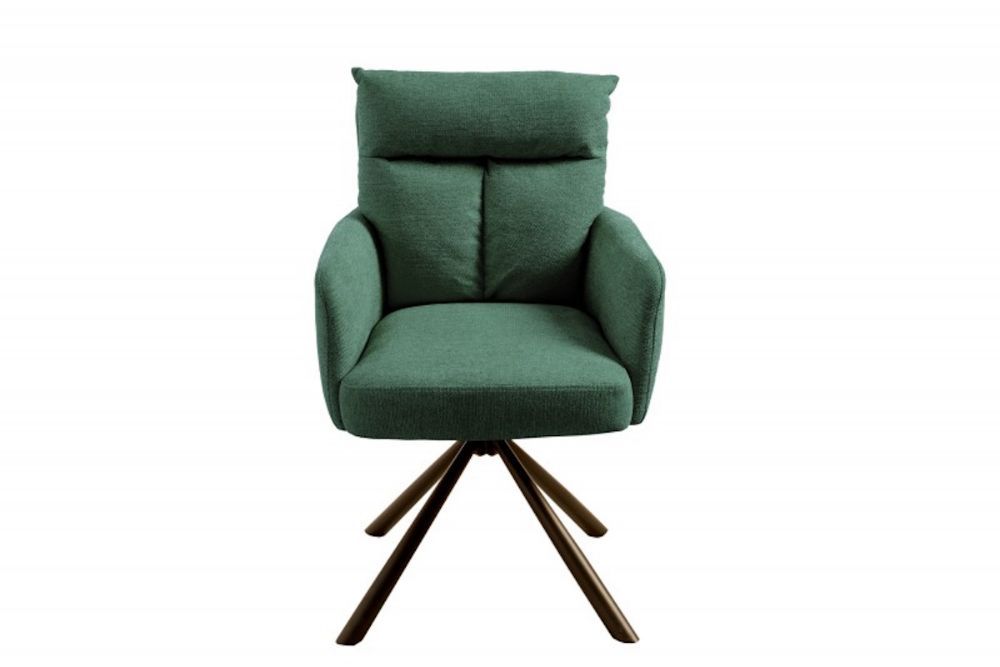 Presvlaka stolice izrađena je od zelenog strukturiranog tekstila, materijala koji nudi ne samo dugotrajnost, već i vizualnu privlačnost. Tkanina stvara igru tekstura, dodajući dubinu i karakter ovom komadu namještaja. Crne, matirane metalne noge pružaju stolicu stabilnost i čvrstoću, dok istovremeno unose dozu industrijskog šarma, kontrirajući mekoći tkanine.