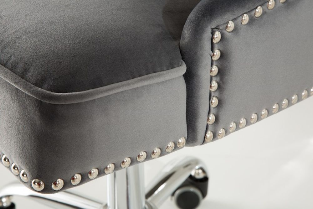 Ovaj raskošni uredski stolac donosi dašak klasičnog luksuza u moderan prostor, inspiriran dizajnom prošlih vremena, ali s naglaskom na suvremenu udobnost i funkcionalnost. Presvučen visokokvalitetnim materijalom u bogatoj sivoj nijansi, zrači profinjenošću i toplinom, dok pažljivo izrađeni nasloni za ruke pružaju dodatnu udobnost i eleganciju. Ovaj stolac nije samo namještaj, već i umjetnički komad, savršeno oblikovan kako bi omogućio dugotrajan rad bez kompromisa na udobnosti. Visoki naslon i ergonomski dizajn osiguravaju optimalnu podršku leđima, a čvrsta, stabilna baza s kotačićima omogućava lakoću pokreta i fleksibilnost. Ovaj stolac je više od običnog uredskog rješenja – on je manifestacija stila i luksuza, koji svaki radni prostor pretvara u sofisticirano utočište.