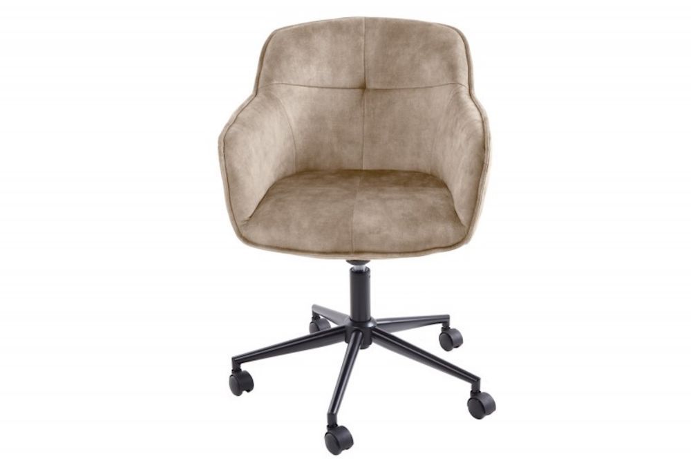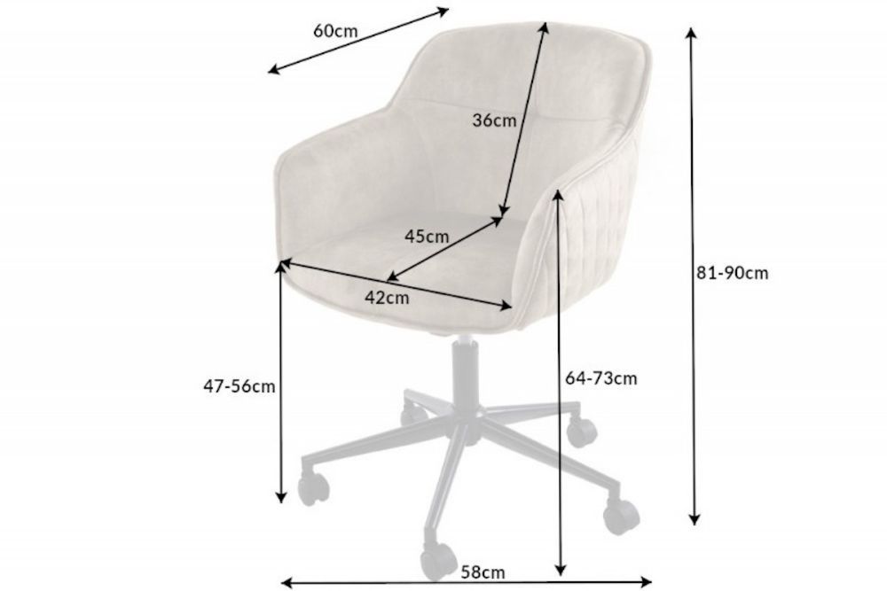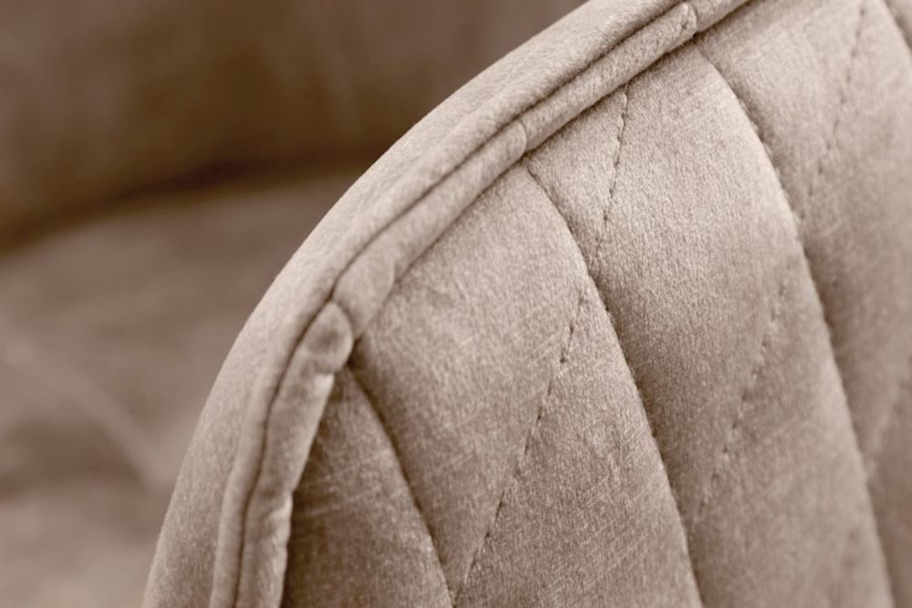 Ova uredska stolica utjelovljuje spoj luksuza i udobnosti, donoseći profinjenost svakom prostoru u kojem se nađe. Presvučena nježnim baršunom, njegov elegantni dizajn odiše sofisticiranošću, dok mekana tkanina pruža osjećaj vrhunske udobnosti pri svakom dodiru. Ergonomski oblik naslona i sjedala nudi podršku koja je savršena za dugotrajno sjedenje, omogućujući vam da radite s lakoćom i bez napora. Blage nijanse šampanjca i greigea donose osjećaj topline i luksuza, dok stabilna metalna baza s kotačićima omogućava lako kretanje i prilagodljivost u svakom radnom prostoru. Podesiva visina i nagib omogućuju personaliziranu udobnost, čineći ovaj stolac idealnim izborom za one koji traže spoj funkcionalnosti i vrhunskog dizajna.