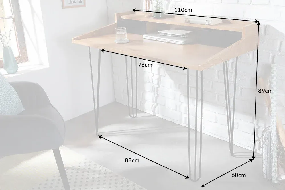 Noge stola, metalne, tamne i odlučne, nježno nadopunjuju drvenu površinu, kontrastirajući s njezinom toplinom čiste hrastove boje. Čini se kao da balansiraju između prošlih vremena i modernog dizajna, između rustikalne čvrstoće i urbane finosti. S dubinom od 60 cm, širinom od 110 cm i visinom od 89 cm, stol je poput tihe prisutnosti u prostoru, savršeno proporcionalan, gotovo kao da je stvoren za svakodnevne trenutke života, ukorijenjen u sadašnjosti, ali s dušom koja podsjeća na prošla vremena.