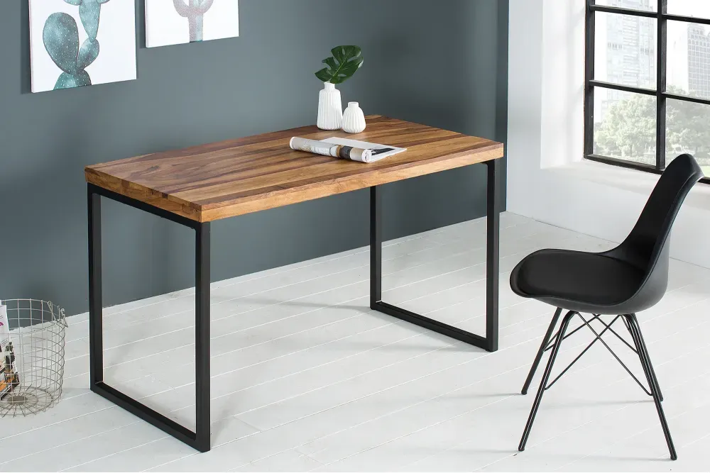 Ovaj stol, u svojoj prirodnoj smeđoj boji, zrači toplinom i autentičnošću koju nosi Sheesham drvo. Svaka linija, svaka čvorna struktura na njegovoj površini, govori o snazi i dugovječnosti prirode, dok visoki lakirani premaz unosi suptilnu eleganciju, stvarajući gotovo zrcalnu refleksiju svjetlosti koja se prelijeva po drvenoj površini. Drvo s karakterom, dovoljno čvrsto da izdrži vrijeme, a dovoljno nježno da zadrži svoju prirodnu ljepotu.