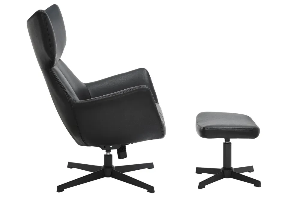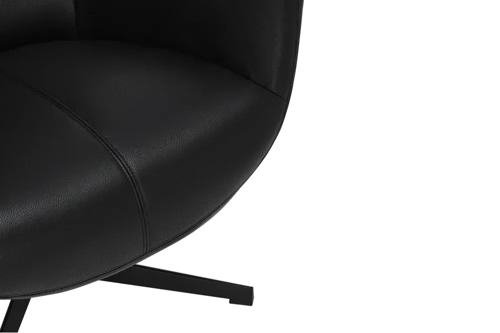 Vogue 360 Black Fotelja u elegantnoj crnoj izvedbi od umjetne kože donosi snažan, moderan karakter u svaki prostor. Njezin profinjeni dizajn u kombinaciji s metalnom konstrukcijom stvara upečatljiv komad namještaja koji se lako uklapa u suvremene i industrijske interijere.